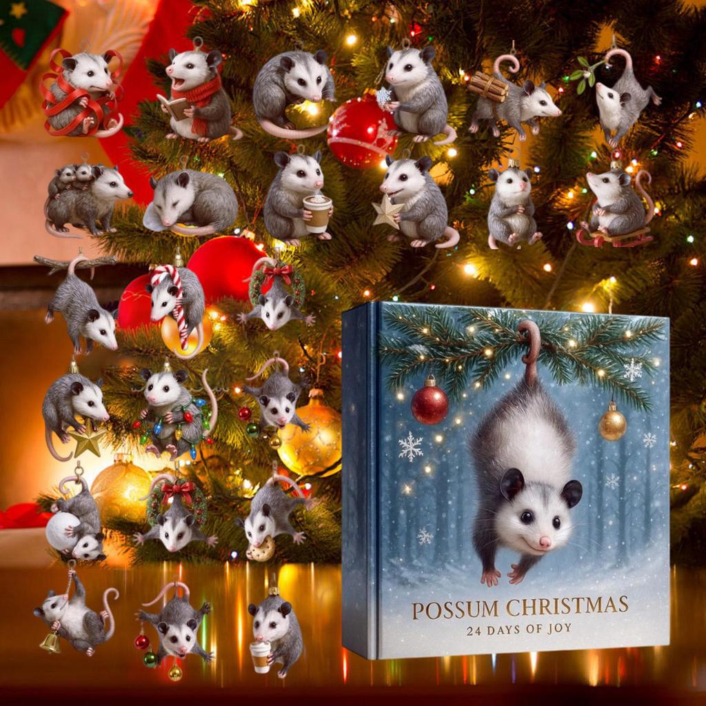 2025 Christmas Countdown Calendar Opossum 24-Day Christmas Holiday Countdown Acrylic Pendant Christmas Collectible Gift Set