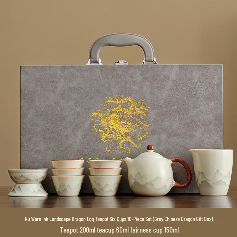 Ru Kiln Ink Landscape Dragon Egg Pot Tea Set — купить товар онлайн с бесплатной доставкой по всему миру!