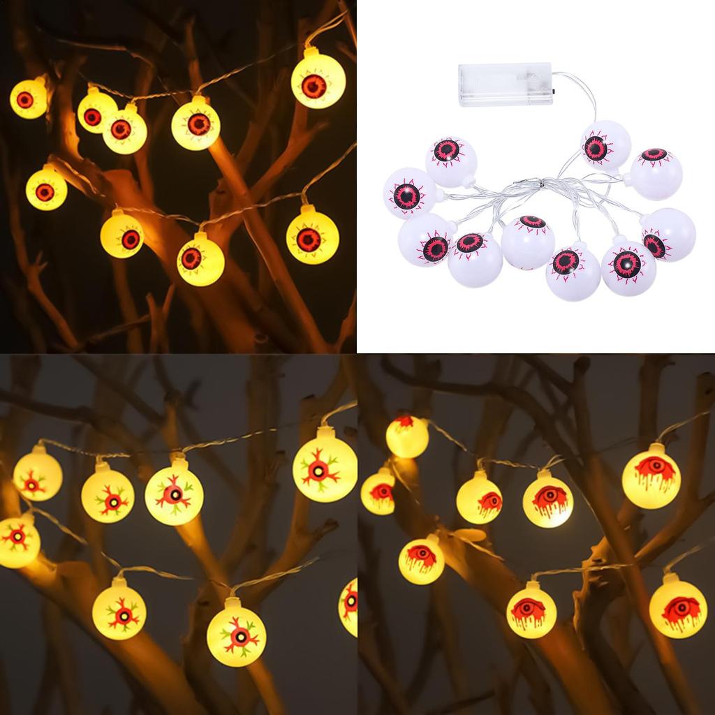 Хэллоуин 2025 Гирлянда из глазных яблок 20 шт./набор Светодиодные фонари на батарейках Фонари в виде глазных яблок Хэллоуин Жуткие украшения в виде глазных яблок