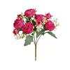 Букет из 5 искусственных пионов с бутонами, реалистичный цветок пиона из искусственного шелка со стеблем для свадьбы, свадебный букет, цветочная композиция, украшение стола