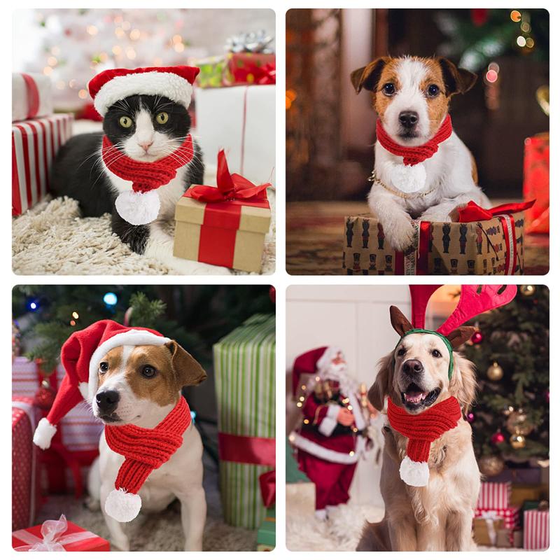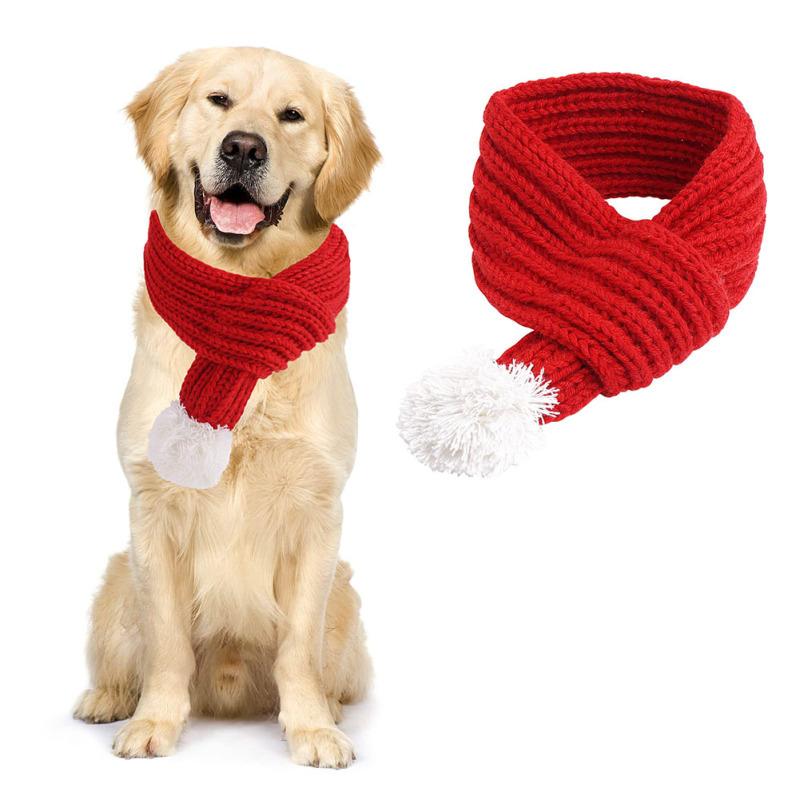 Pet Christmas Knitted Scarf With Fuzzy Pompom Winter Warm Scarf Neck Warmer Bandana For Cats Dogs