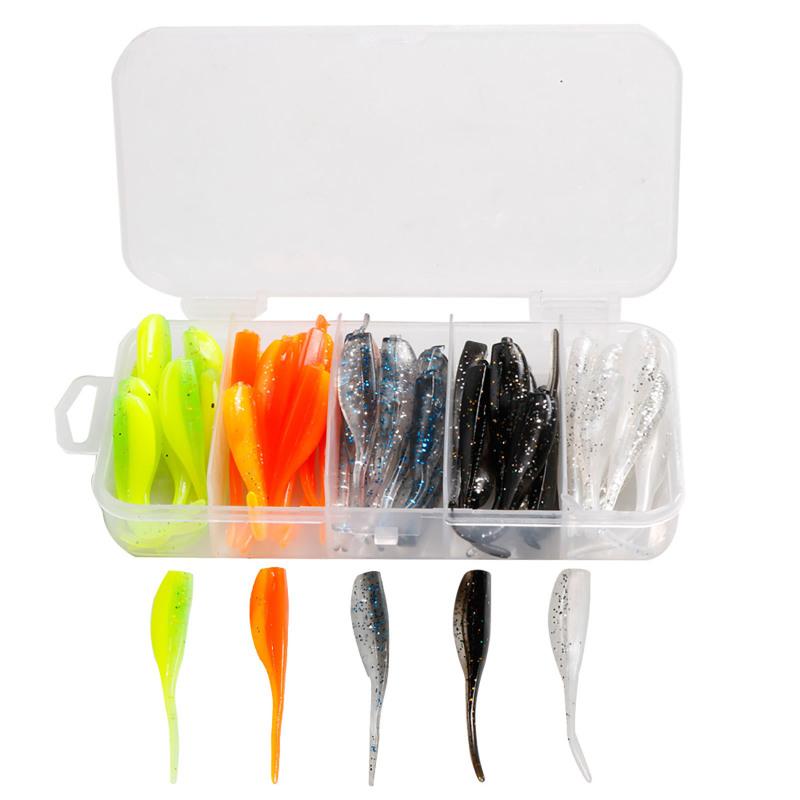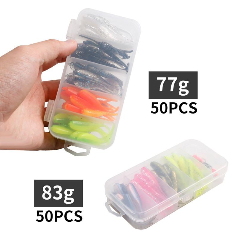 Набор из 50 мягких приманок, износостойкая искусственная приманка с отражающими блестками для ловли карпа, окуня, судака
