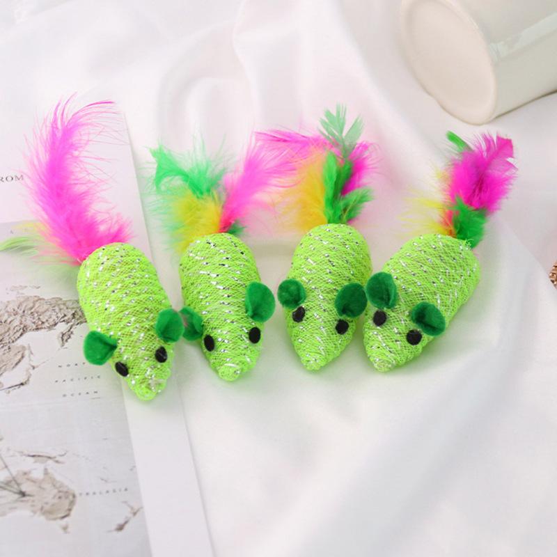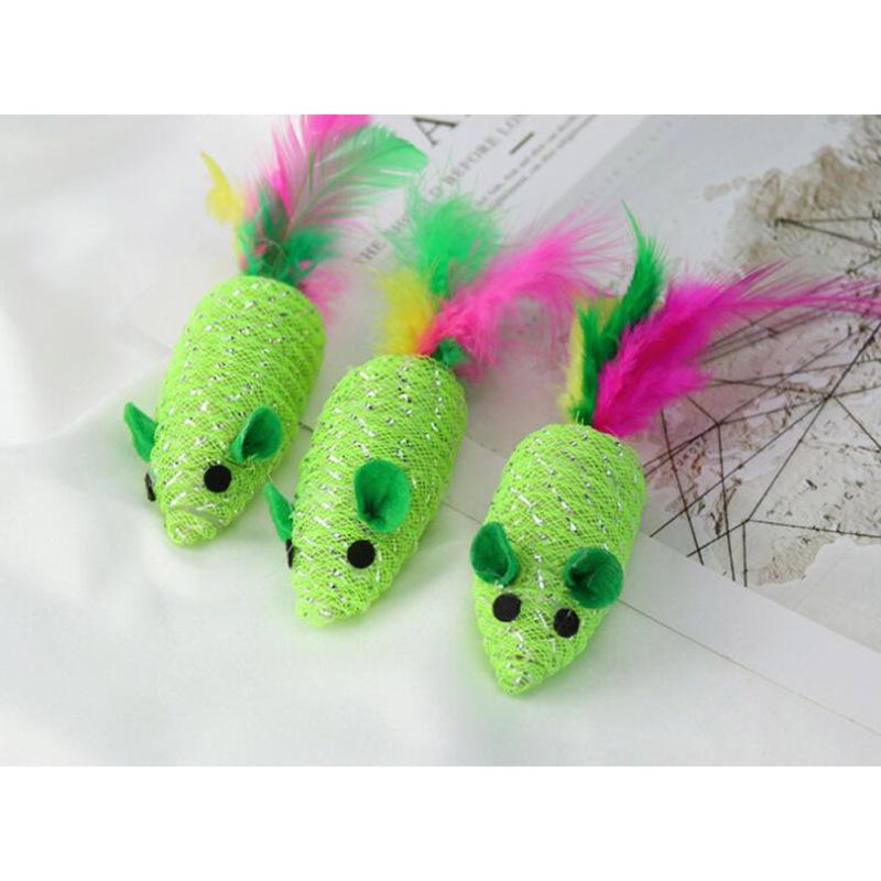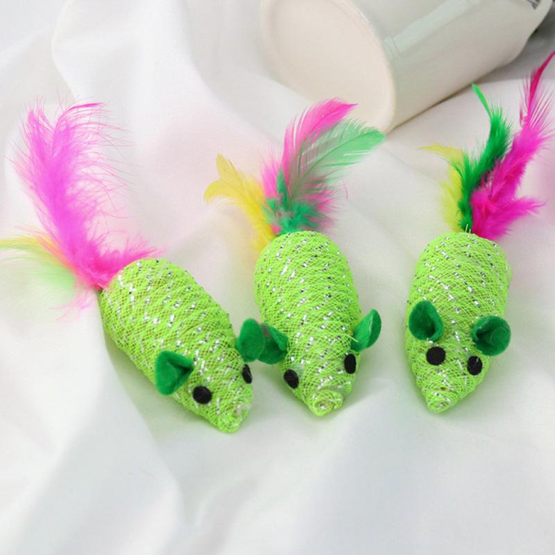 Зеленая плетеная игрушка-мышь с перьями, устойчивая к укусам, устойчивая к царапинам, интерактивная игрушка для домашних кошек