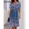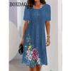 Модный тренд 2025 года 3D Имитация джинсовой ткани Женское платье Летнее уличное С коротким рукавом O-образный вырез Свободное Повседневное Платья с цветочным принтом