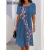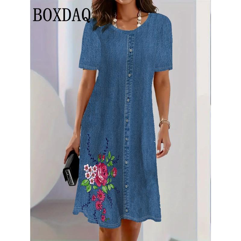 Модный тренд 2025 года 3D Имитация джинсовой ткани Женское платье Летнее уличное С коротким рукавом O-образный вырез Свободное Повседневное Платья с цветочным принтом — купить товар онлайн с бесплатной доставкой по всему миру!