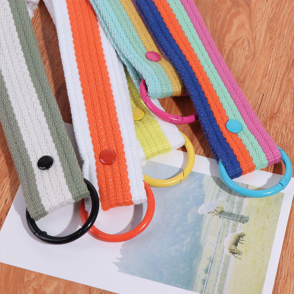 Простой полосатый брелок для ключей, цветной шнурок для ключей из холщовой ленты, брелок для ключей от автомобиля