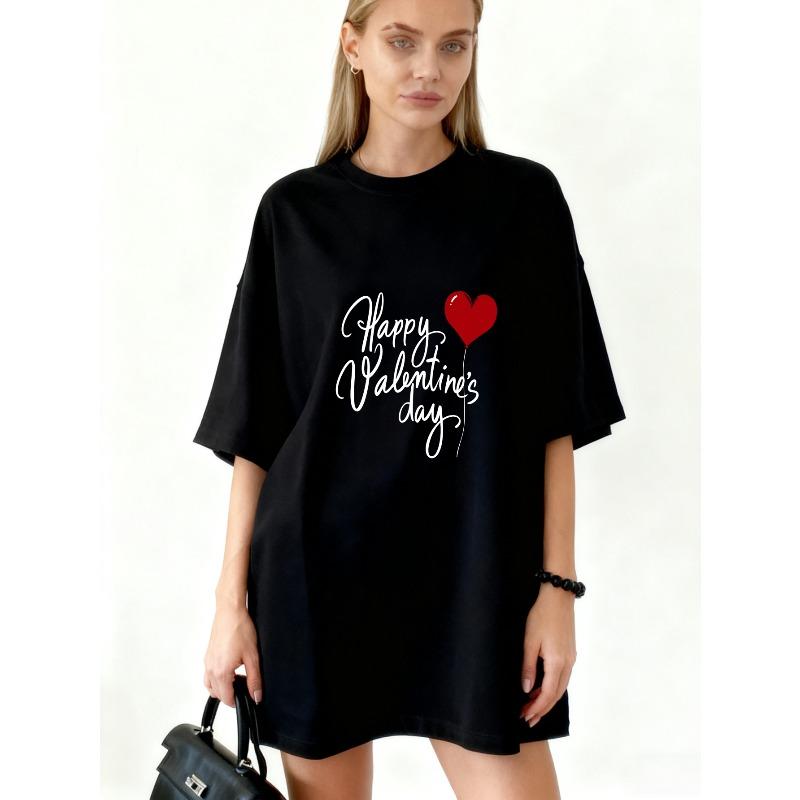 Черная футболка оверсайз с принтом сердца «С Днем святого Валентина» на День святого Валентина — купить товар онлайн с бесплатной доставкой до всему миру!