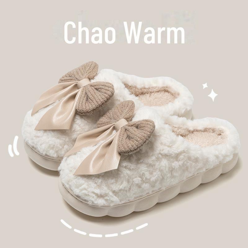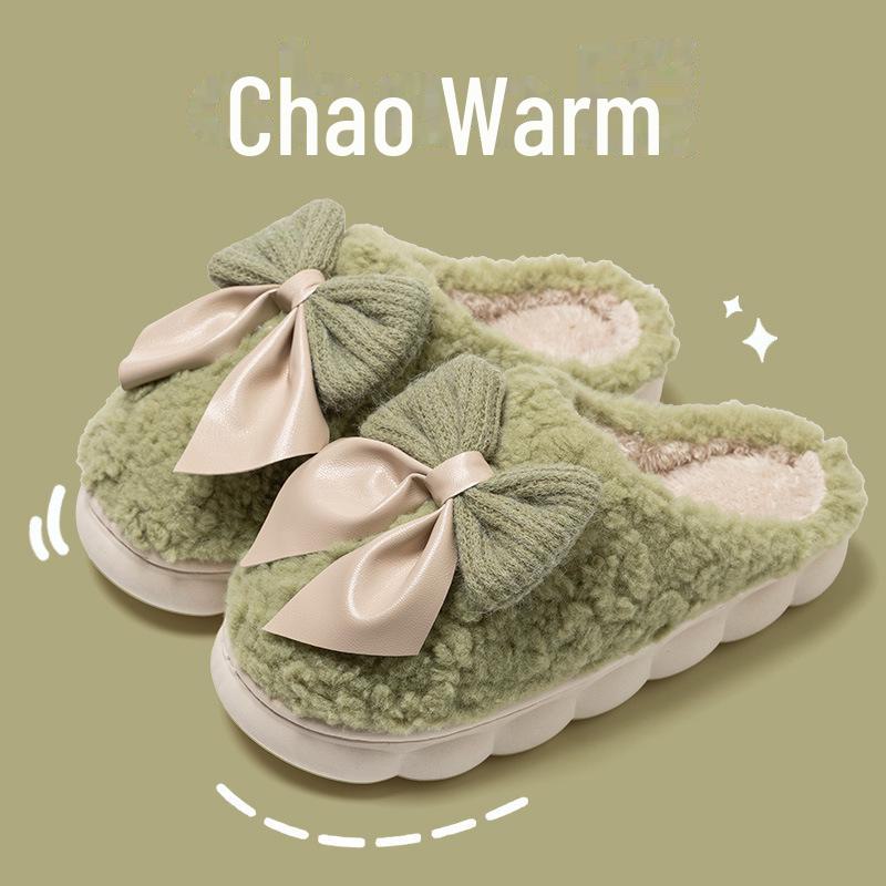 Осень Зима Женские Милые Хлопковые Тапочки с Бабочками Толстоподошвенные Плюшевые Тапочки