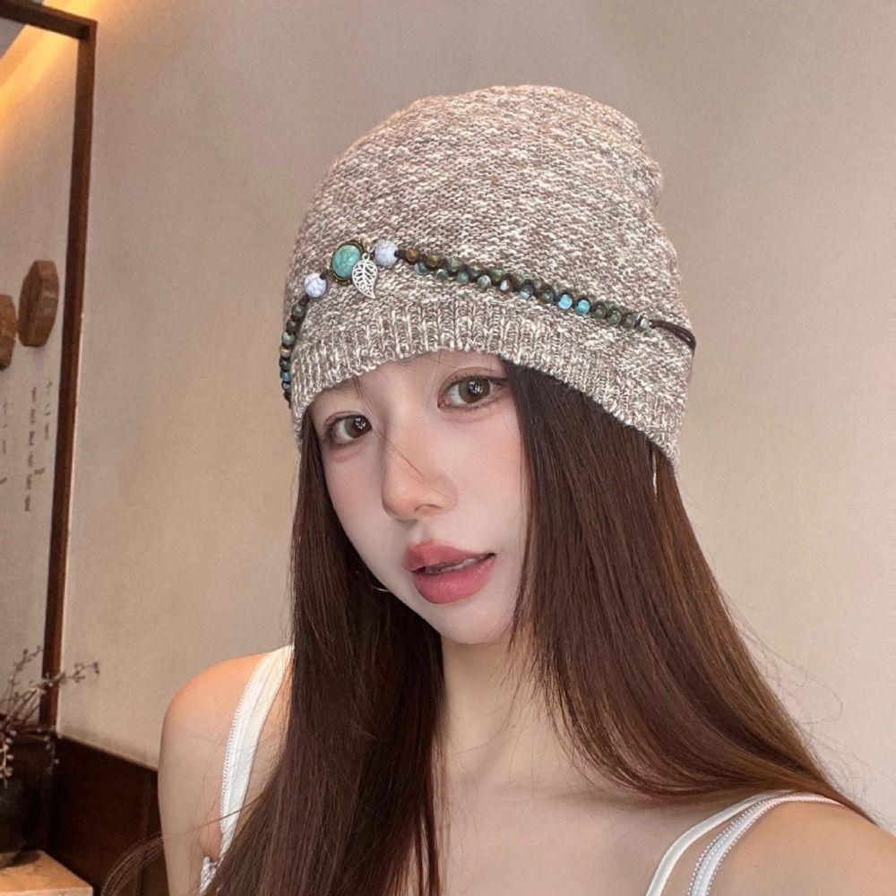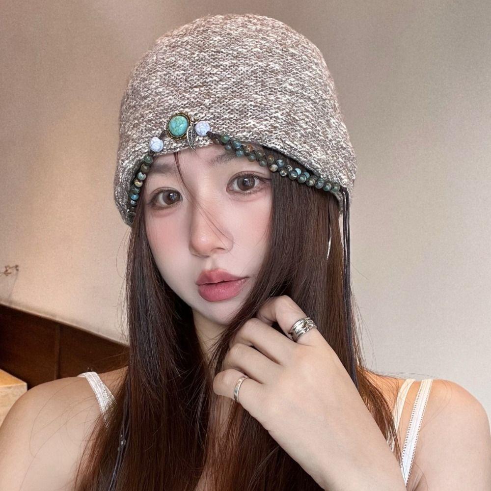 Keep Warm Knitted Pullover Hat Coldproof Beaded Fringed Cap Casual Bohemian Beanies Hat Autumn