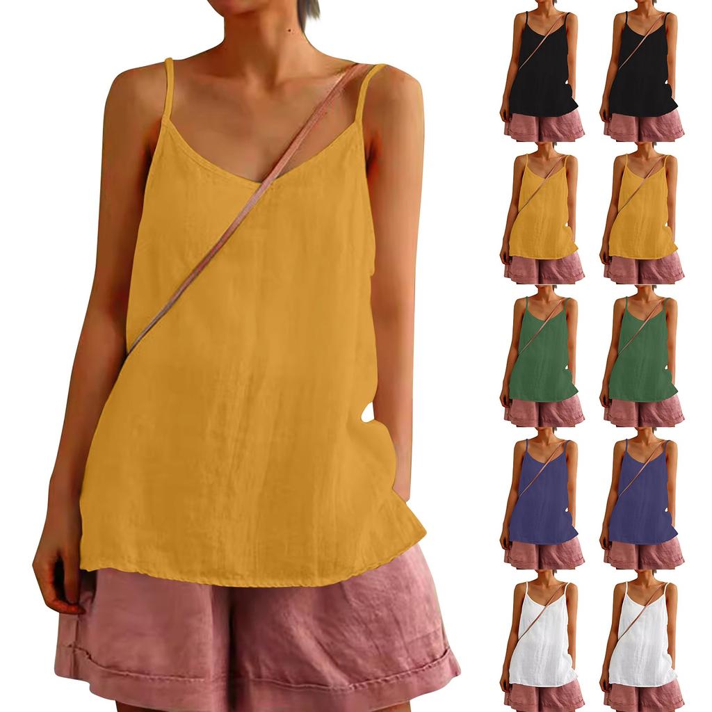 Женский однотонный топ из хлопка и льна, свободный, без рукавов, универсальный, с подкладкой