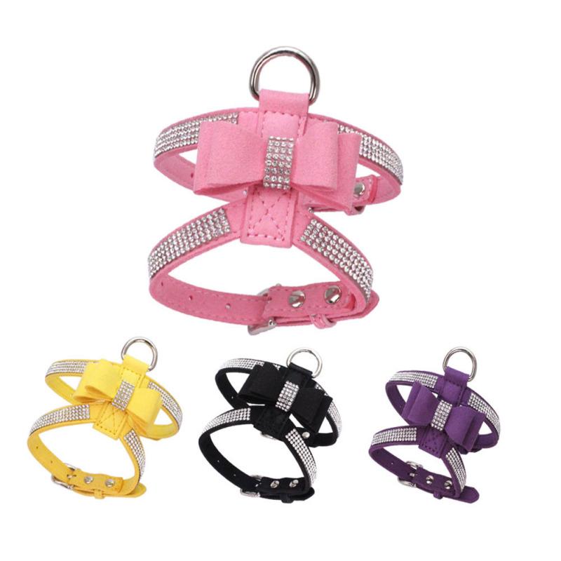 Удобная шлейка для домашних животных из микрофибры с блестящим кристаллом и бантом