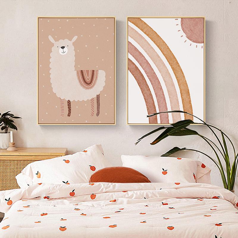 Rainbow Love Crown Alpaca Wall Art Canvas Painting Nordic Posters And Prints Nursery Cartoon Wall Pictures Kids Room Decor No Frame