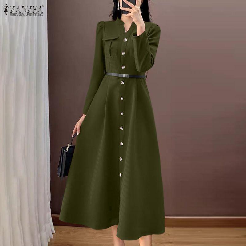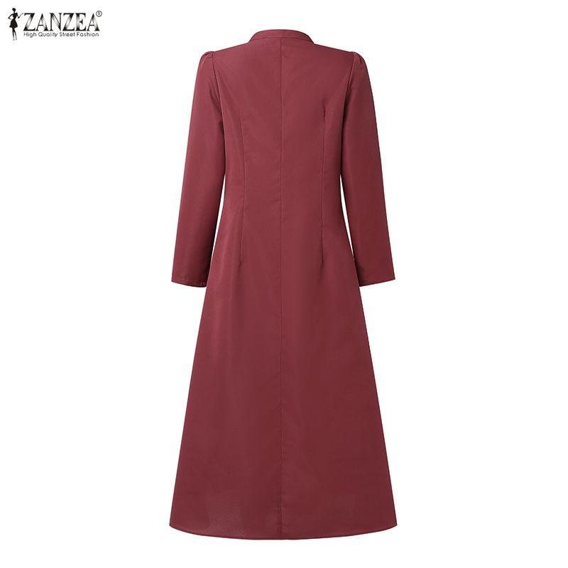 ZANZEA Женское повседневное платье с V-образным вырезом, однотонное, с длинным рукавом, элегантное