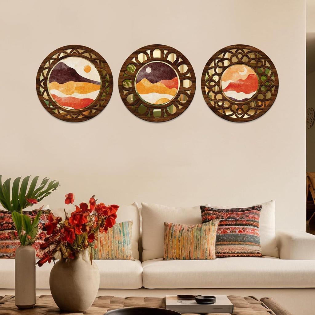 Mirror Style MDF Home Decoration Item for living room Set of 3 | Wall Hanging | Wall Decor