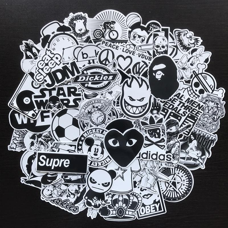 50 шт./компл., черно-белые наклейки для автомобиля, виниловые наклейки для допинга, граффити, наклейки