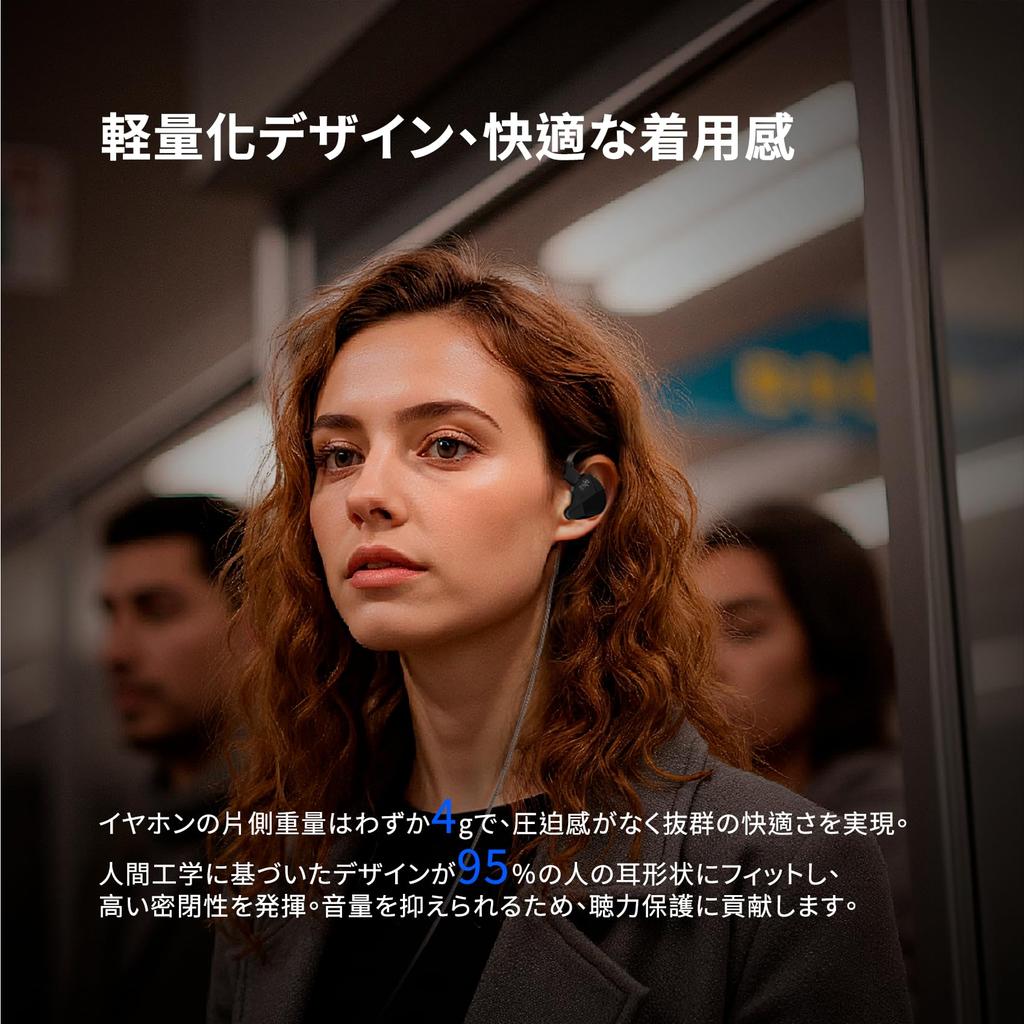 [Lightweight wired earphones] CCZ NC01 in-ear monitors are made from lightweight PC material and are ultra-lightweight, weighing just 4g per ear (equivalent to a single sheet of A4 paper). They are extremely unobtrusive when worn, eliminating the feeling of pressure that comes with conventional wired earphones. Even with extended use, you won't feel any ear pain or fatigue, and they offer a comfortable fit all day long. Weighing just 4g, these extremely lightweight monitor earphones provide a comfortable music experience in any situation. Lightweight for more free listening, the NC01 in-ear earphones allow you to enjoy music unrestricted, wherever you are.
