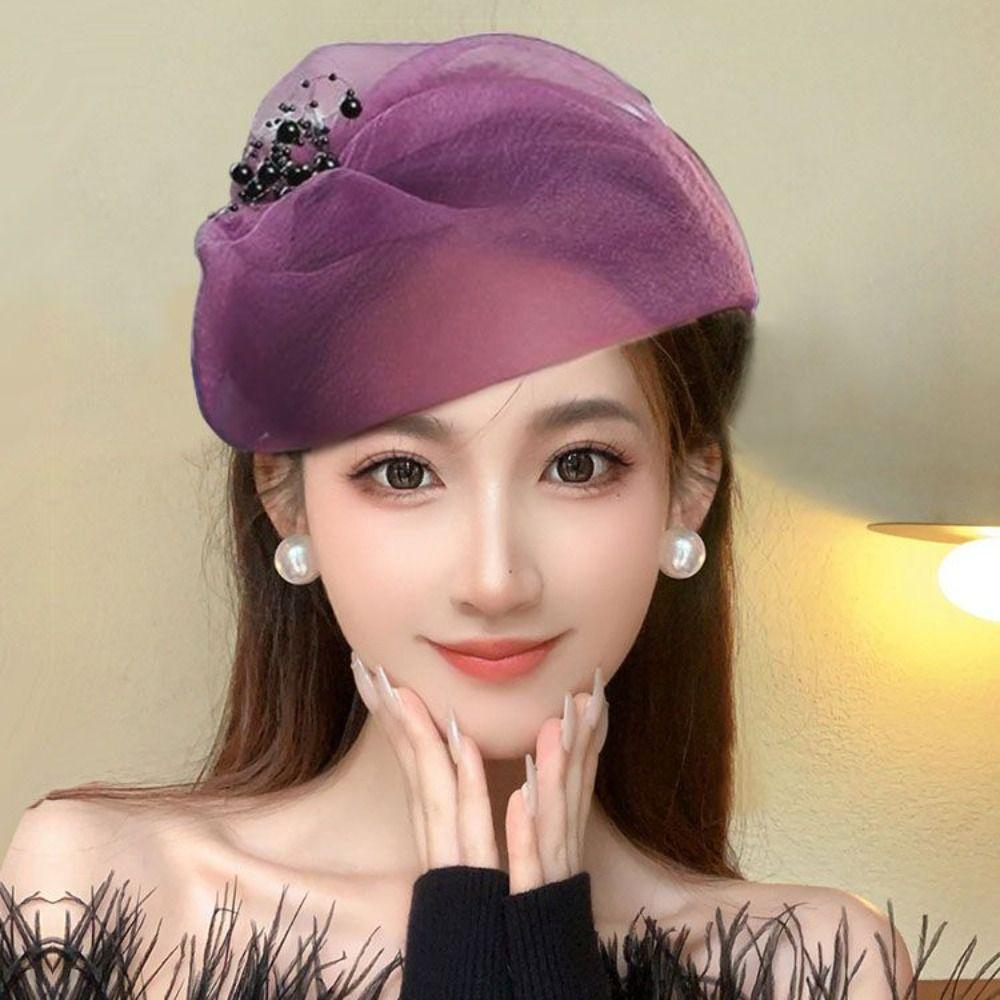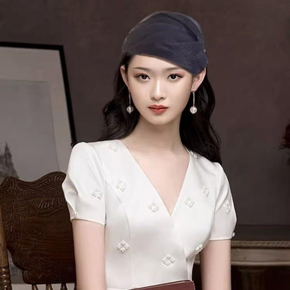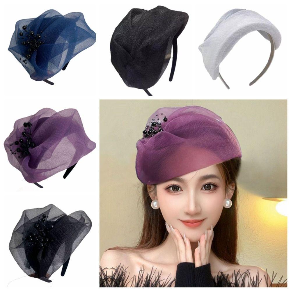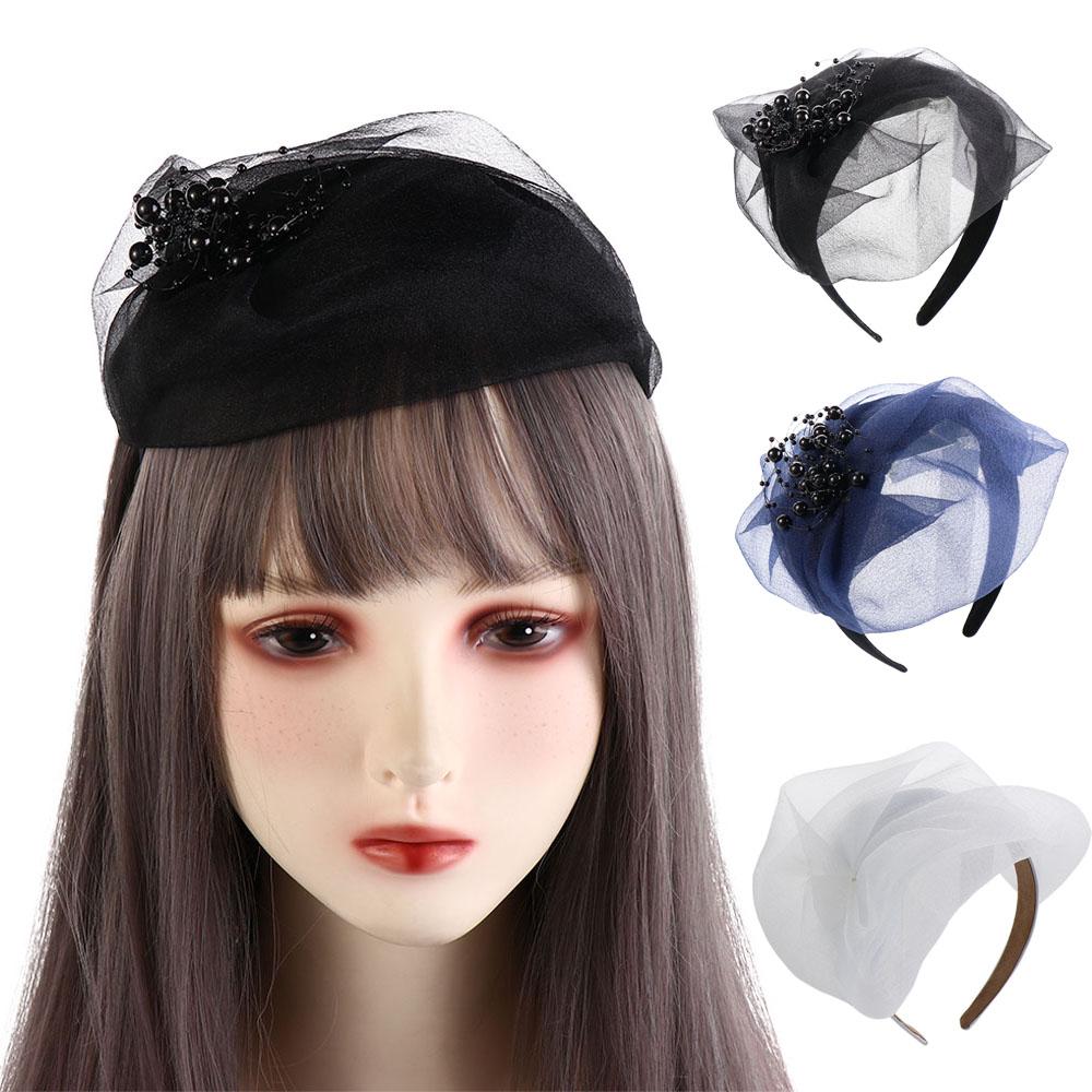 Французский стиль Пряжа Полушляпа Повязка на голову Сетчатая шляпа Форма Повязка для волос Винтажная Сетчатая Обруч для волос Девочка