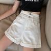 Классические и минималистичные модные универсальные женские летние шорты с высокой талией и двойной пряжкой, свободные, тонкие, широкие, с подворотом, A Word, супер джинсовые шорты, индивидуальность