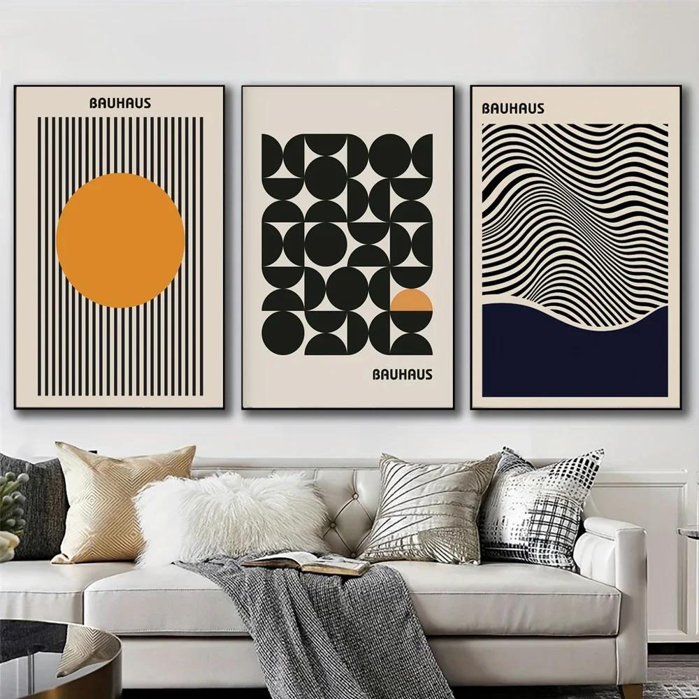 Минималистичные геометрические принты в стиле Баухаус, современная картина на холсте с черными линиями, украшение для дома, гостиной, без рамы