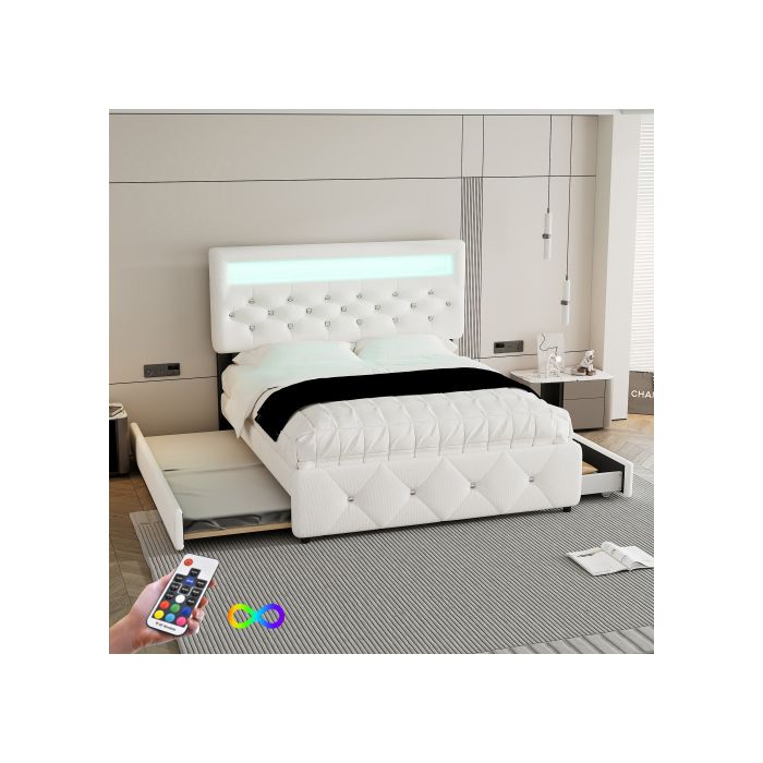 Lit capitonné - MUVOE - 140x200 cm - Blanc - 2 tiroirs - Design élégant — купить товар онлайн с бесплатной доставкой по всему миру!