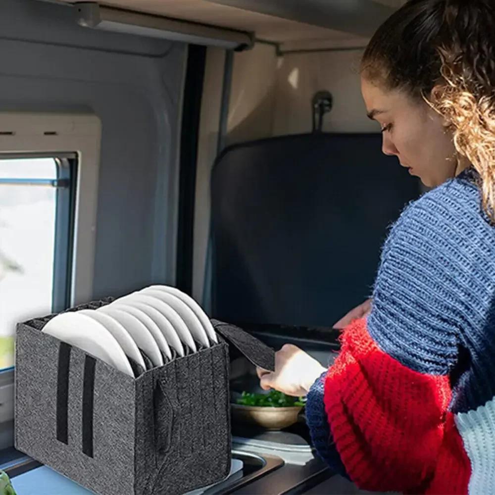 Фетровая тарелка, блюдо, чашка, сумка для хранения, держатель, утолщенный, контейнеры для кемпинговой посуды, кухонный шкаф для автодома, многослойная организация