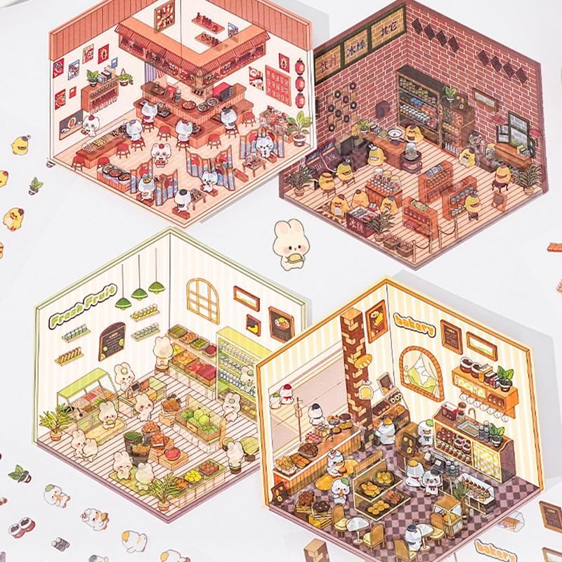Miniature House Stickers 3D Effect Cartoon Scene Stickers kit 1 Scene 2 Stickers for Party Gift Make Kids Own House Stickers