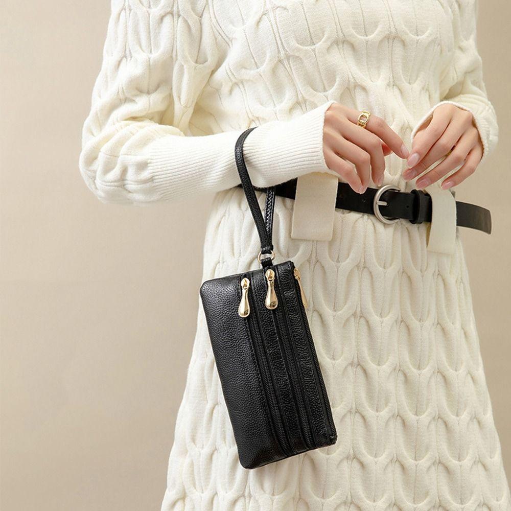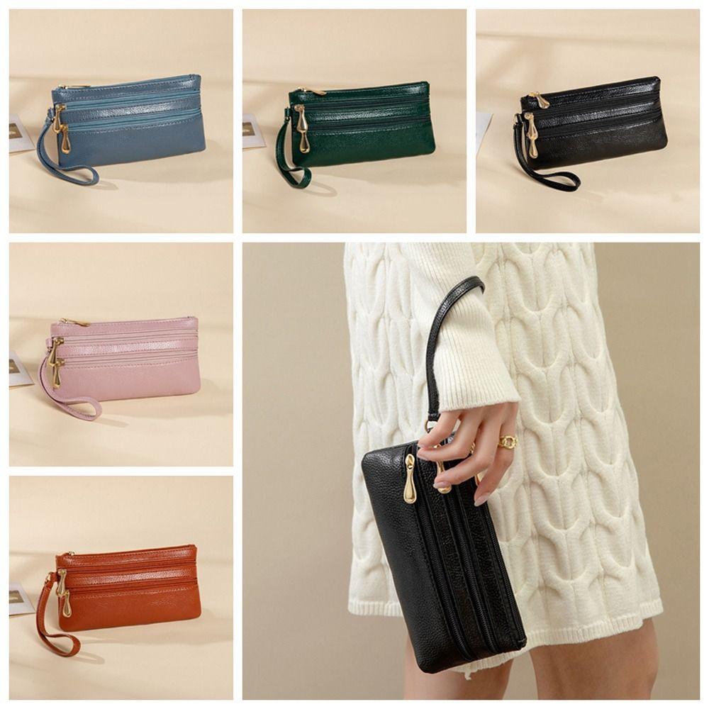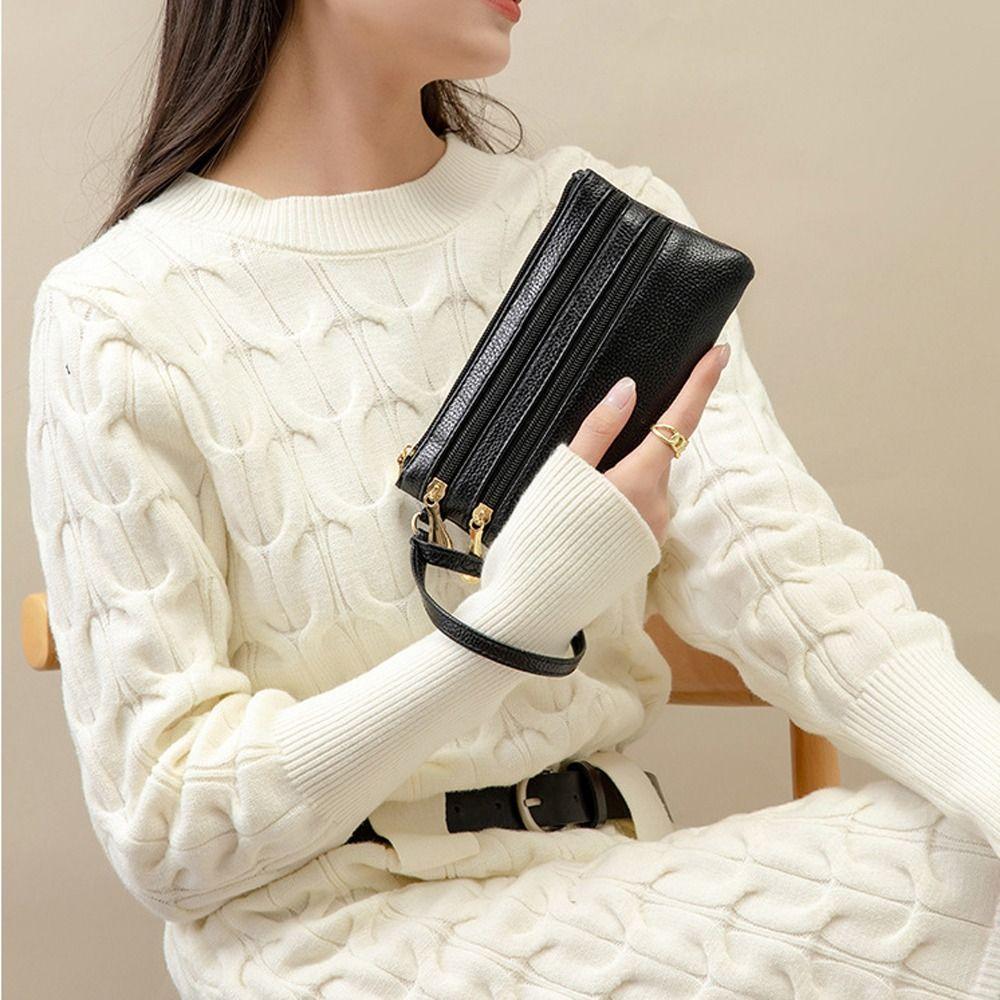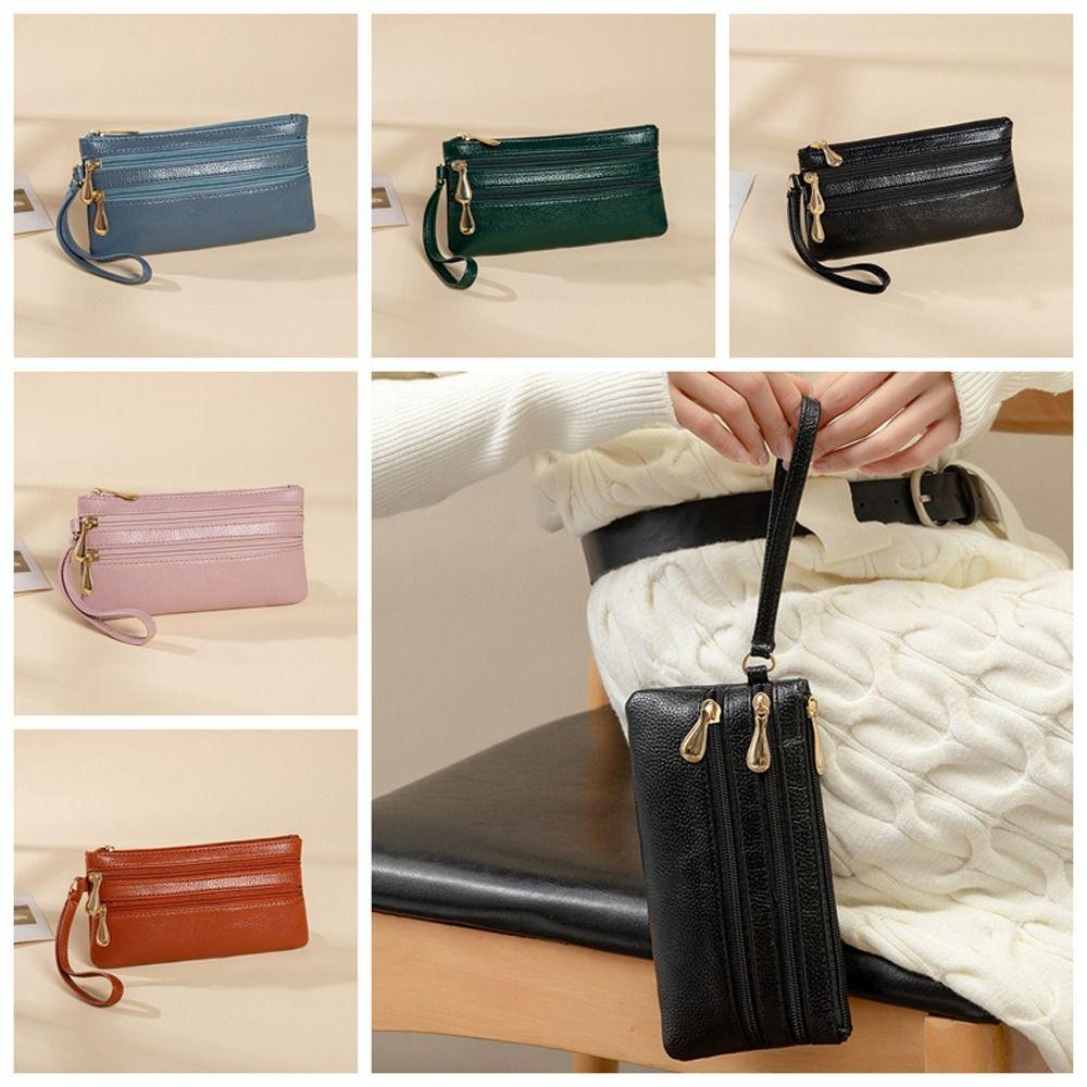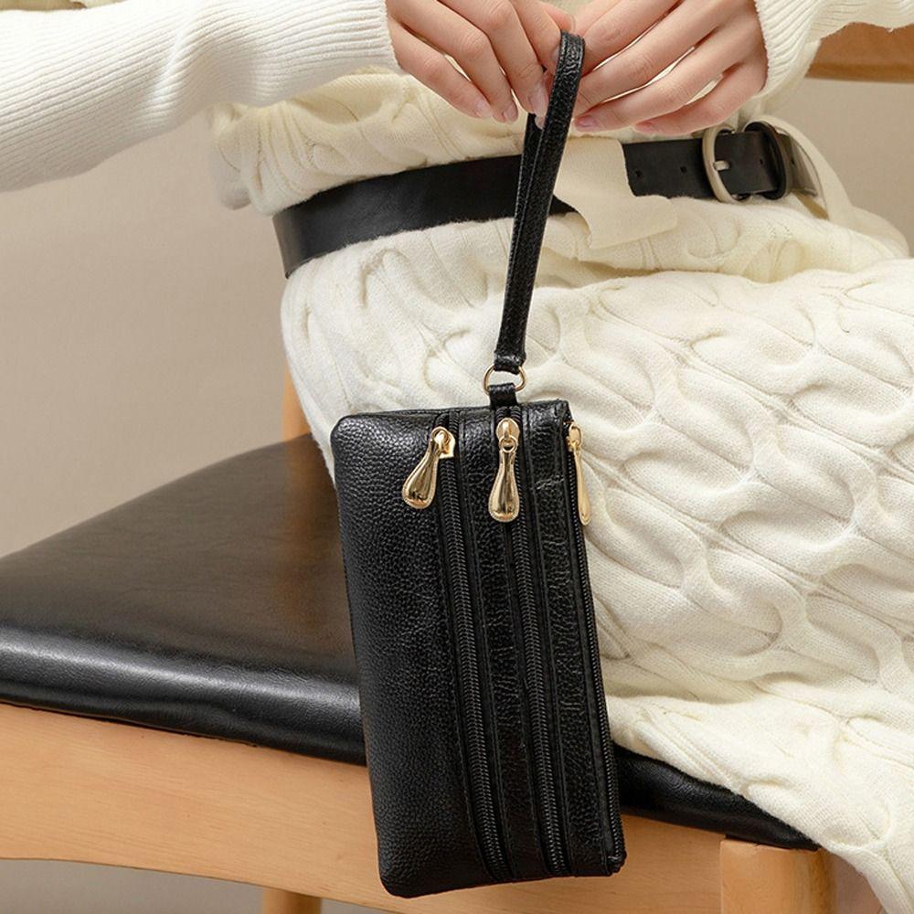 Вместительный кошелек для монет на молнии с двумя отделениями, многокарманный, с текстурой личи, длинный кошелек, модный, для улицы