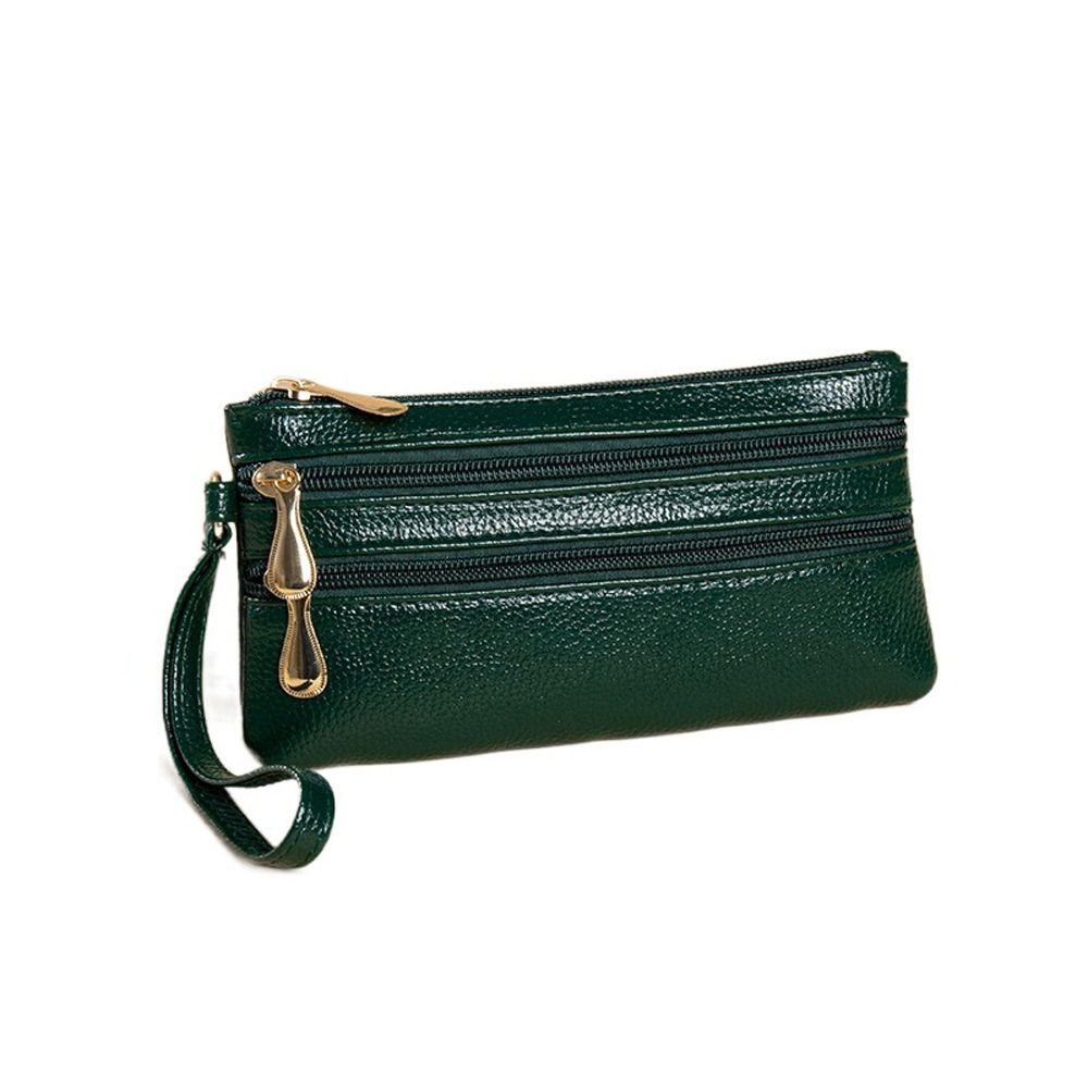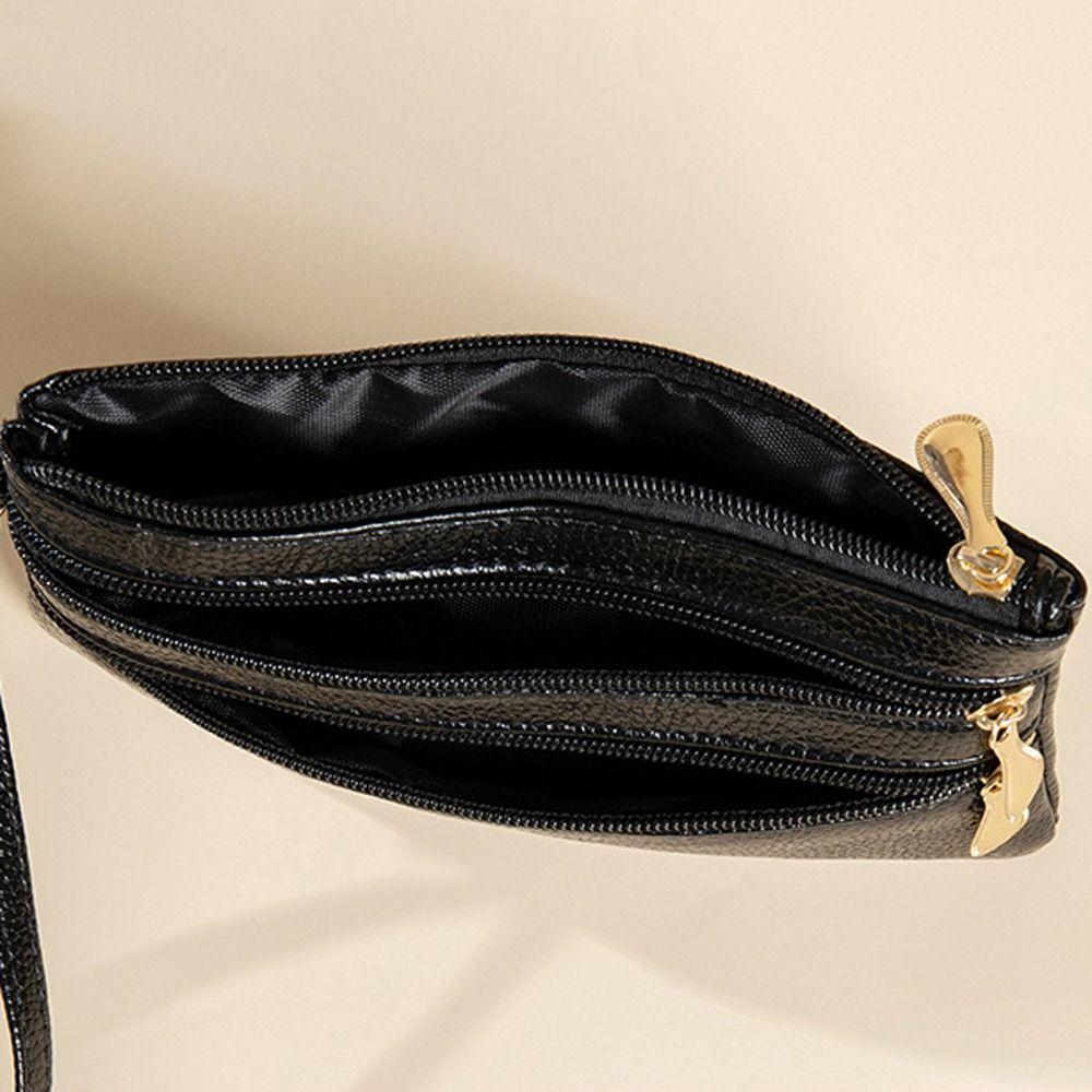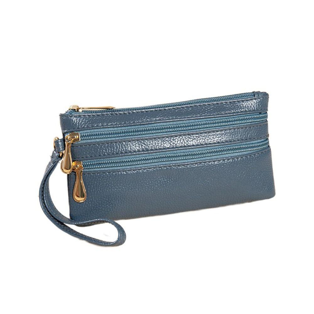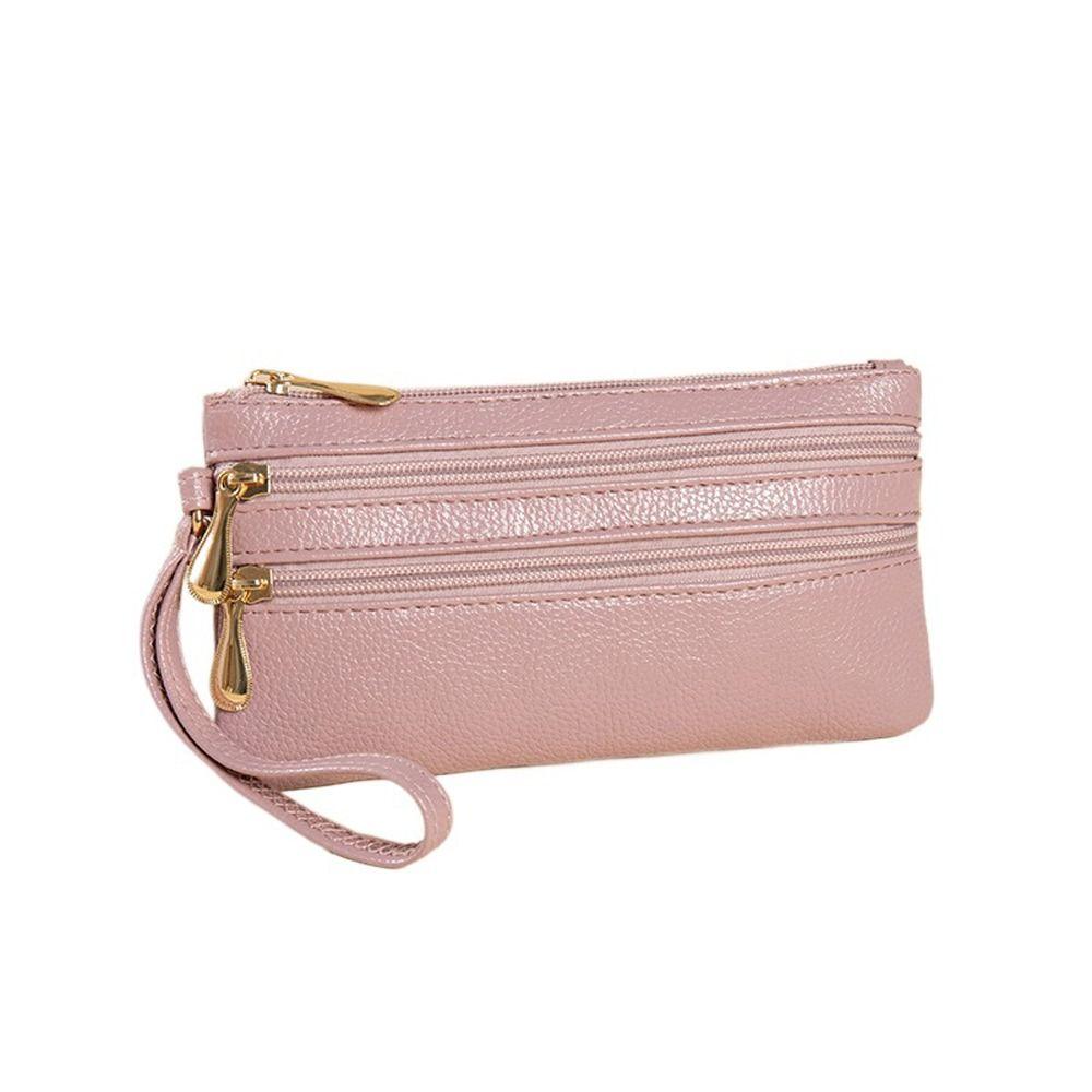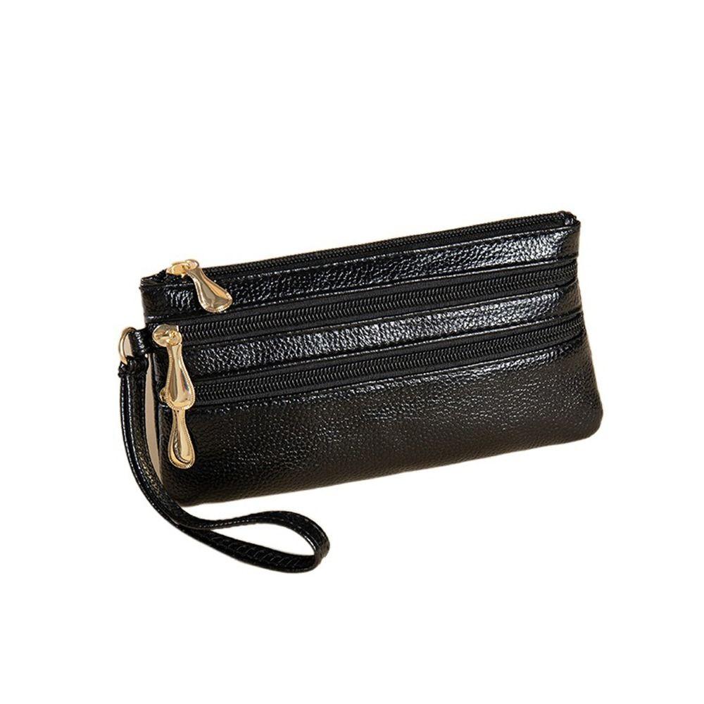 Вместительный кошелек для монет на молнии с двумя отделениями, многокарманный, с текстурой личи, длинный кошелек, модный, для улицы