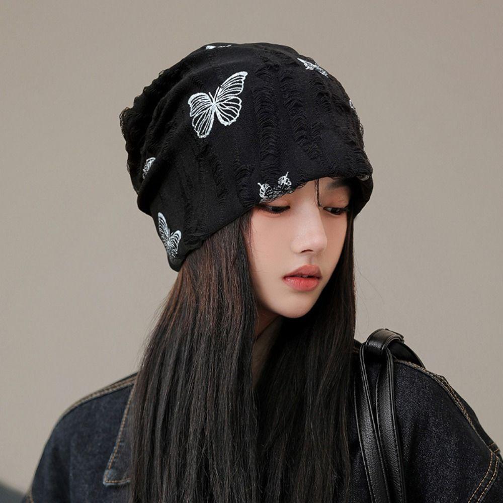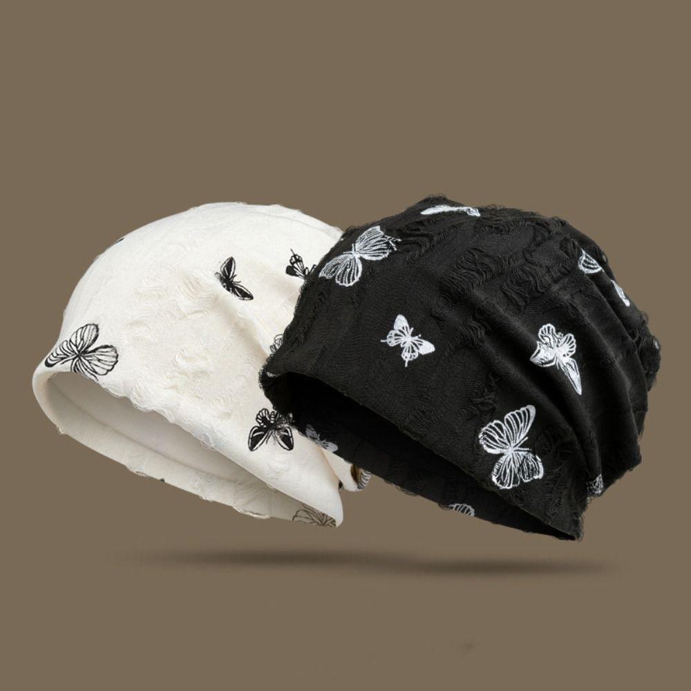 Korean Style Butterfly Print Beanies Thin Knitted Hat Fashion Pullover Hat Autumn
