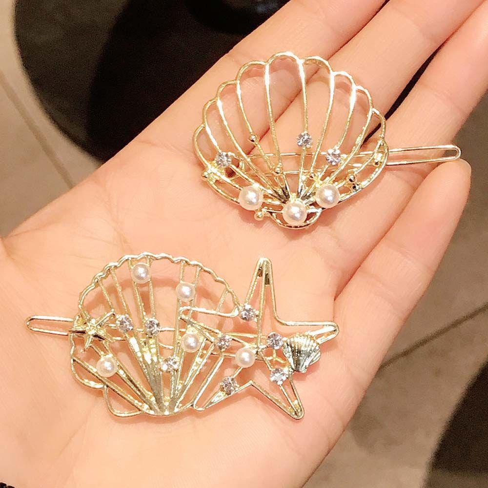 Летние Пляжные Девушки Жемчужная Раковина Морского Ушка Женские Цинковый Сплав Жемчуг Зажим Заколки Заколки-Автоматы