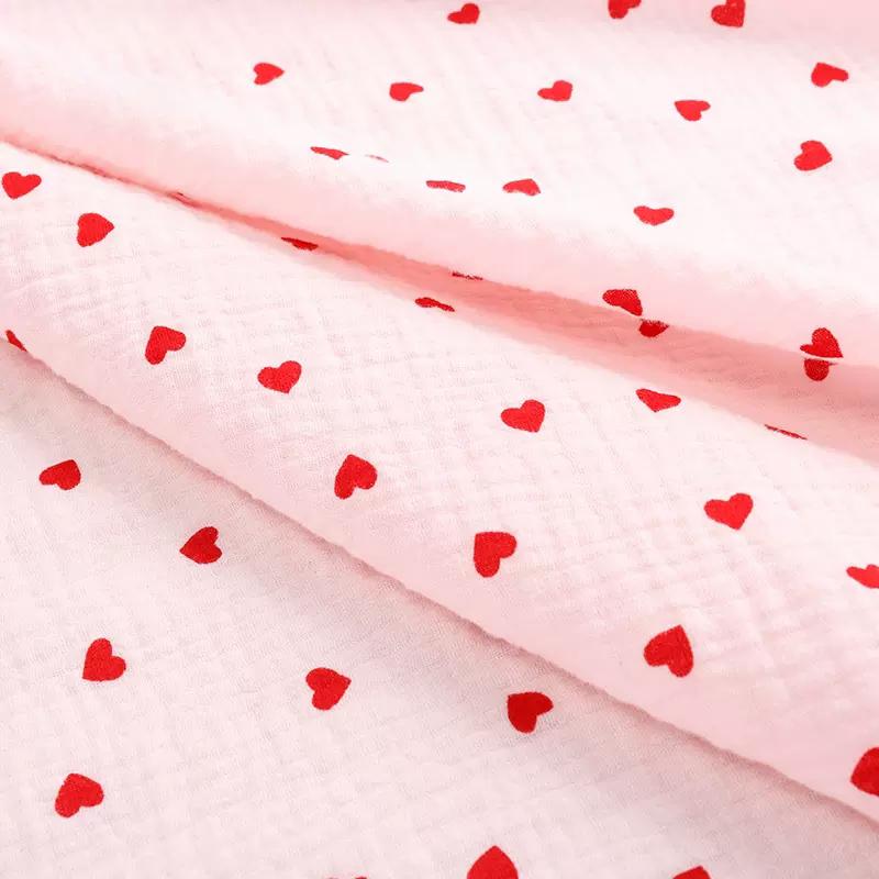 135x50см Мягкий креп Двухслойная марля Милый принт с сердечками Детская хлопковая ткань Для одежды для сна Постельная ткань YHW300530