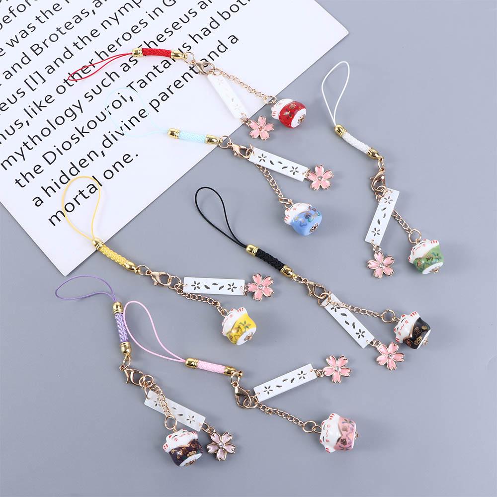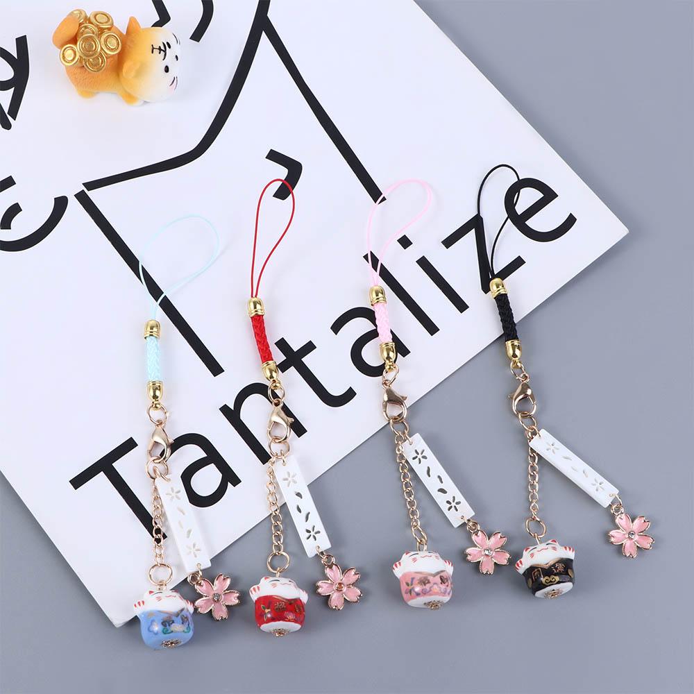 Keyring Key Chain Mobile Phone Straps Mobile Phone Lanyard Lucky Cat Keychain Maneki Neko Trinkets
