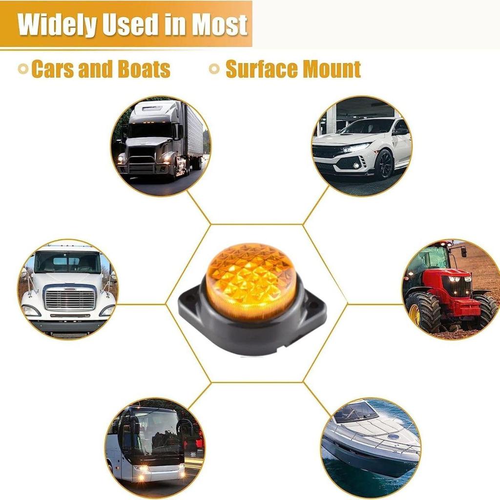 APSMOTIV 10PCS LED Marker Lights Trailer 12V Trailer Amber Lights with Chrome Bezel Universial for Auto Bus Truck Lorry Trailer Deck Courtesy