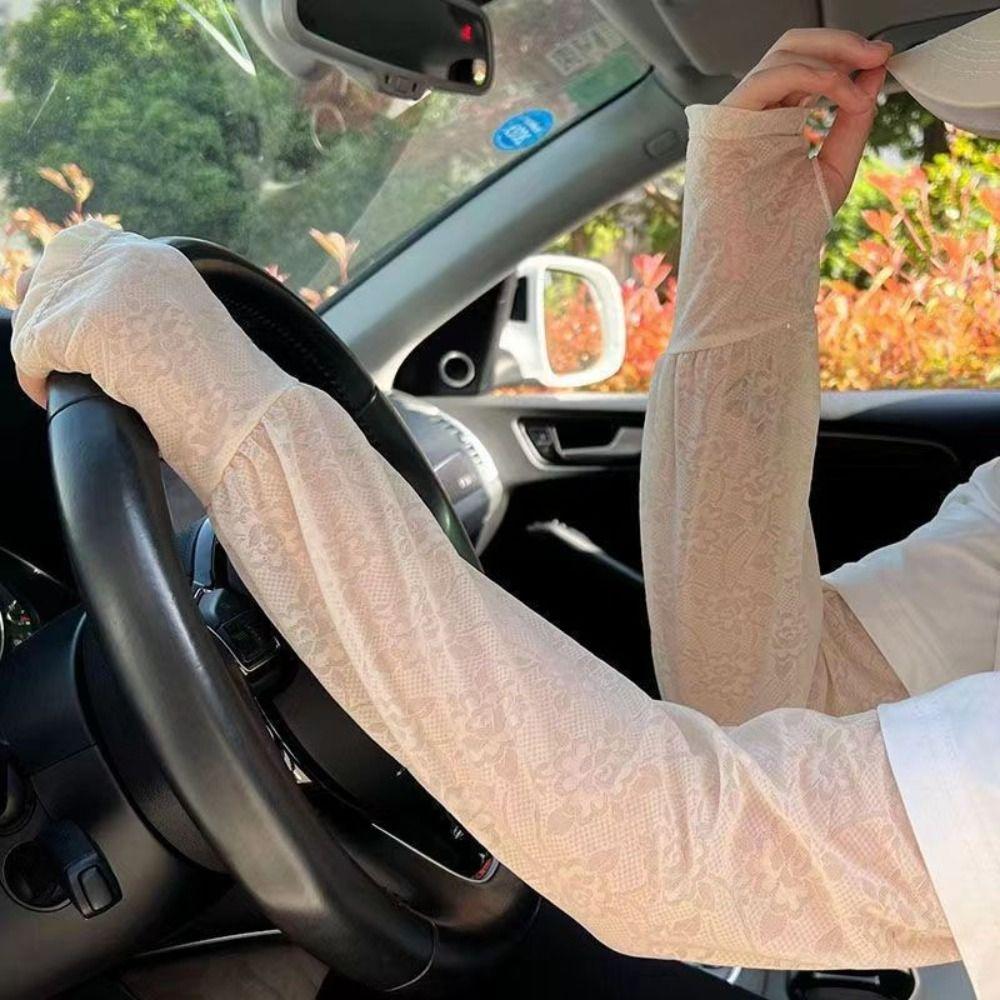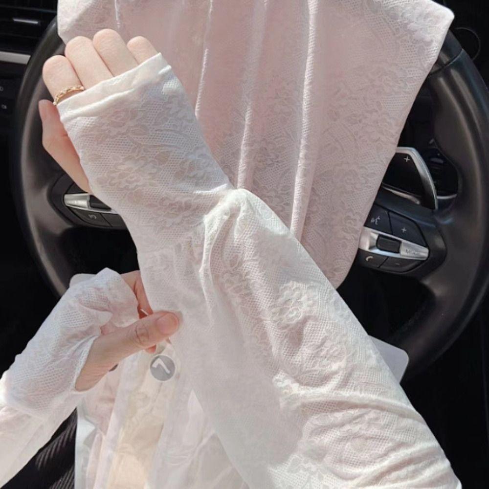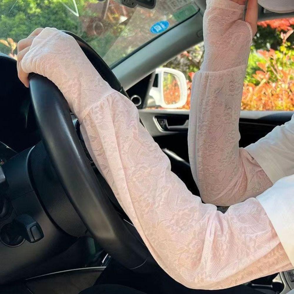 Солнцезащитный рукав с защитой от УФ-лучей, перчатки для велоспорта с цветочным узором, дышащие кружевные рукава из ледяного шелка, для вождения