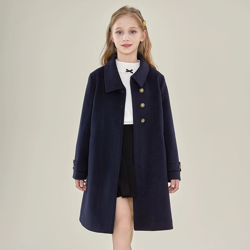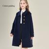 Модное шерстяное пальто для девочек темно-синего цвета, свободное шерстяное пальто с хлопковой подкладкой для детей на осень и зиму