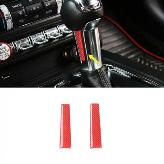 Console Gear Shift Knob Head Strip For Ford Mustang 2015- Red Carbon Fiber