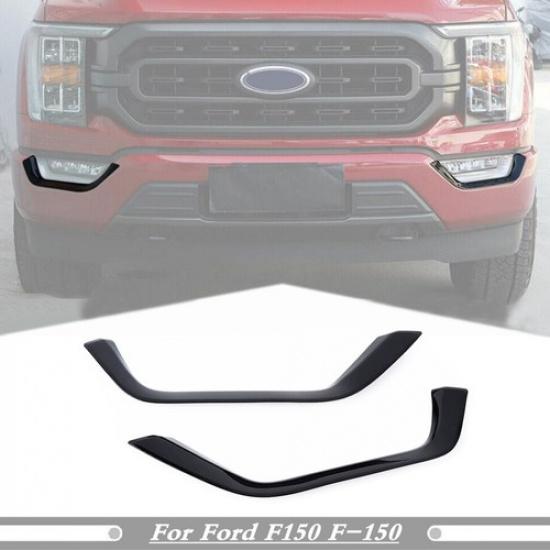 For - Ford F150 F-150 Gloss Black Front Fog Light Lamp Strips Cover Trim