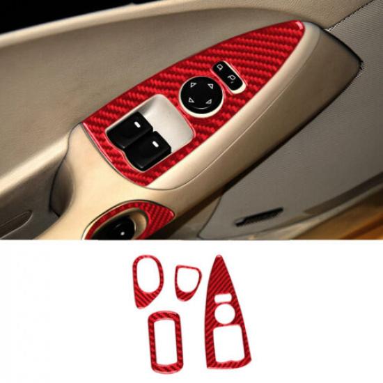 Red Carbon Fiber Car Inner Door Window Lift Panel Cover For Corvette C6 2005-13