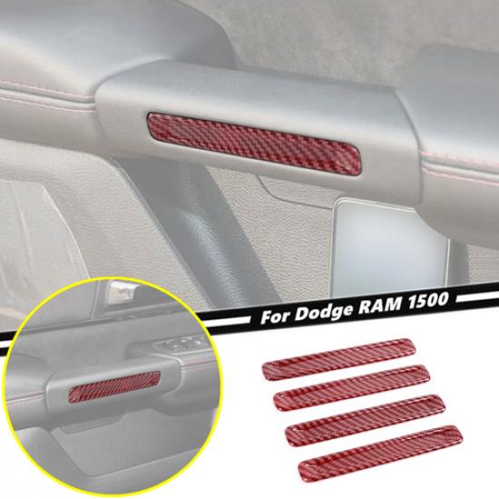 4P Inner Door Handles Decor Cover Trim For Dodge Ram 1500 19-26 Red Carbon Fiber