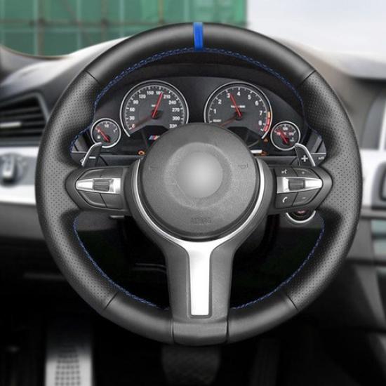 Black-Blue Line Steering Wheel Leather Cover Trim For BMW X5 F15 M50d 2013-2018