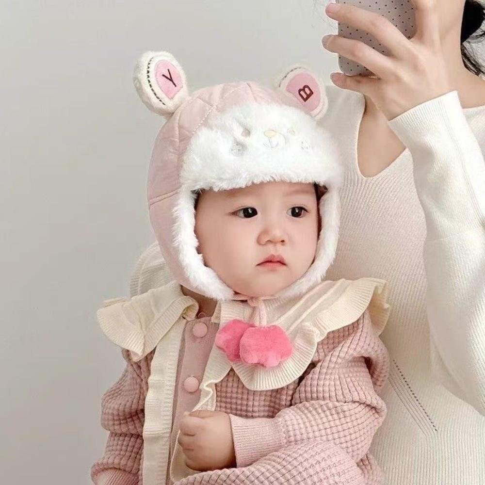 Windproof Cartoon Bear Baby Hat Plush Trendy Baby Beanie Cap Cute Earmuffs Toddler Cap Gifts
