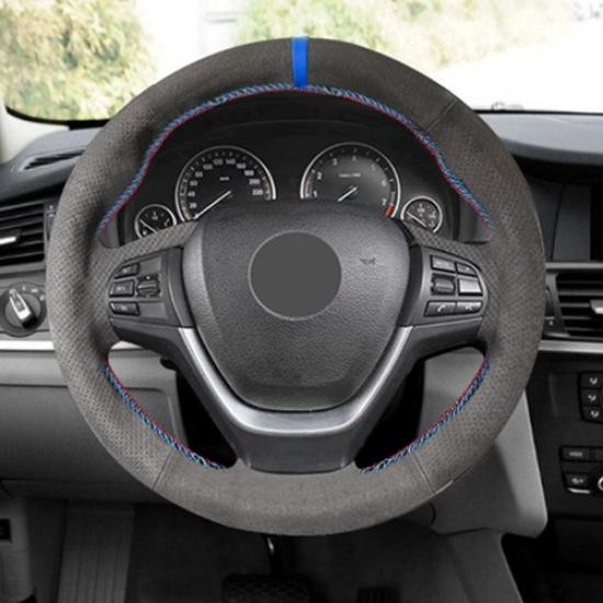 Suede Blue-strip Steering Wheel Leather Cover For BMW X5 F15 2014 2015 2016-2018