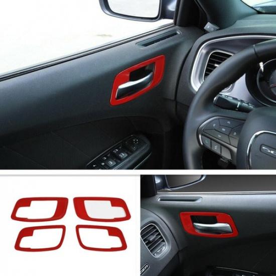 For Dodge Charger 2015- Red Inner Door Handle Bowl Cover Trim Accessories 4P