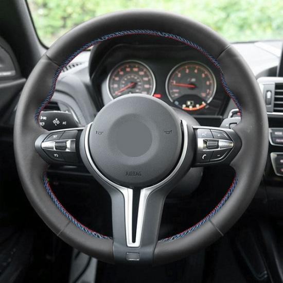 Кожаная оплетка рулевого колеса с красно-синей строчкой для BMW 5 серии F10 F11 2013-2017