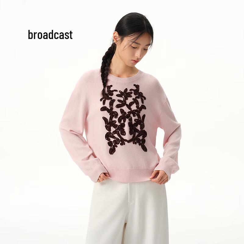 Broadcast Women's 100% Wool Embroidered Round Neck Sweater