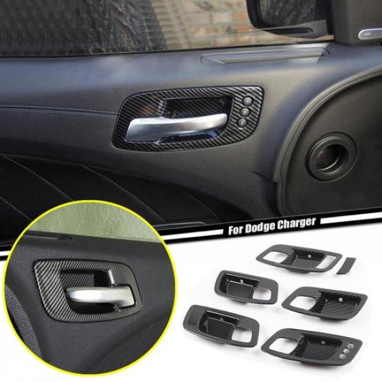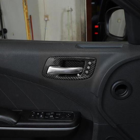For 2015- Dodge Charger Carbon Fiber Inner Door Handle Bowl Decor Cover Trim