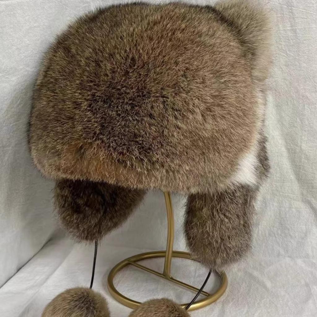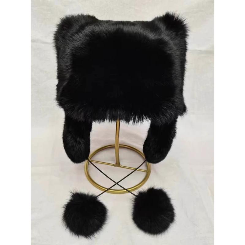 Шляпа из натурального кроличьего меха с ушками кошки, женская, осенне-зимняя, милая, с помпоном, ушками, утолщенная, теплая