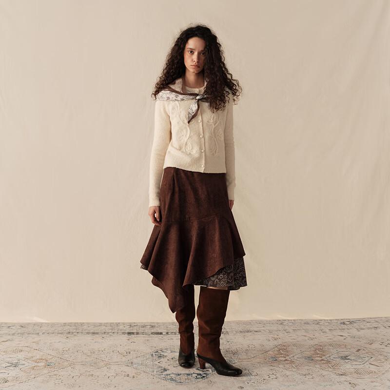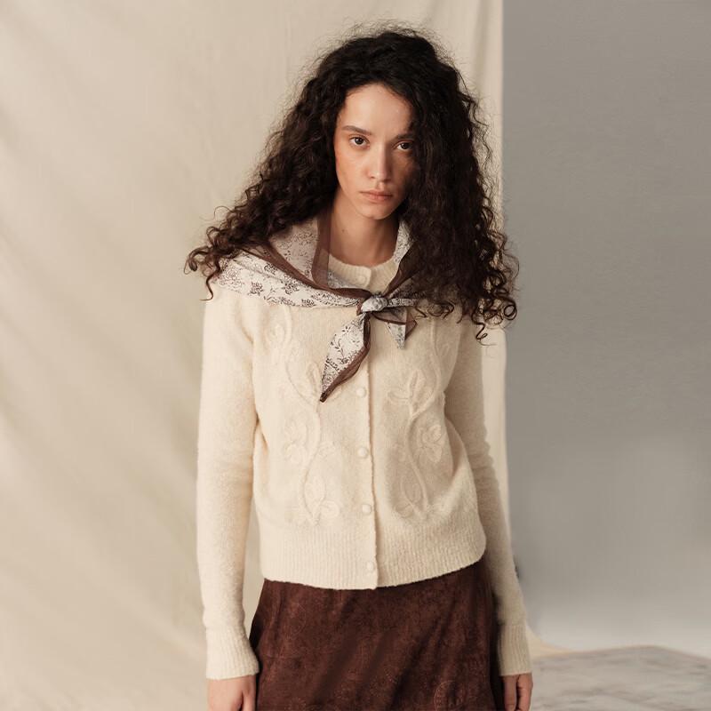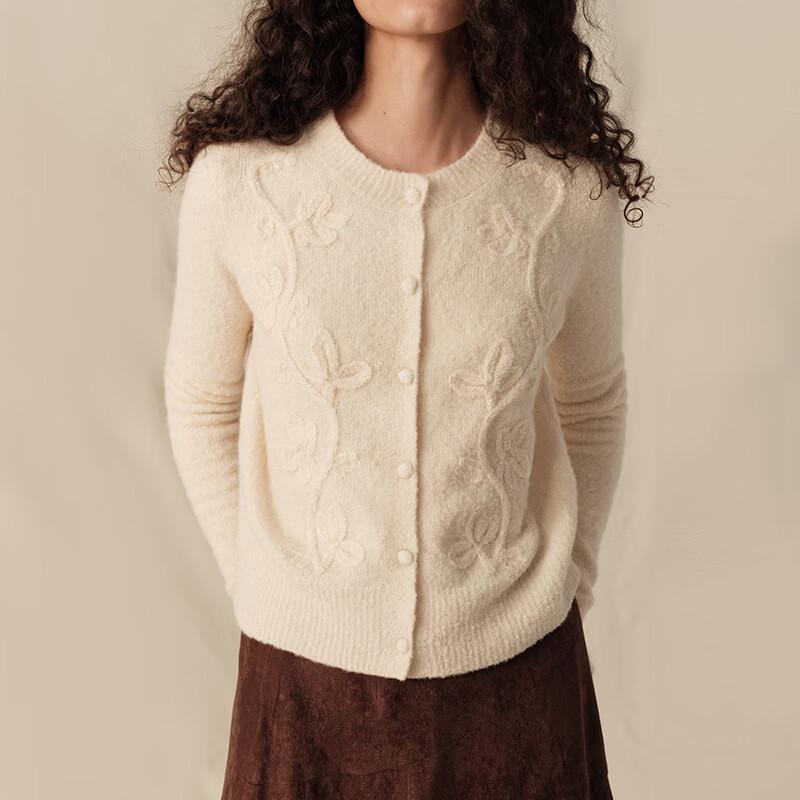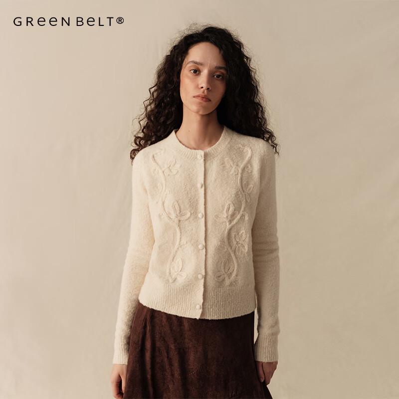 GREEN BELT Women's Floral Knit Wool Cardigan