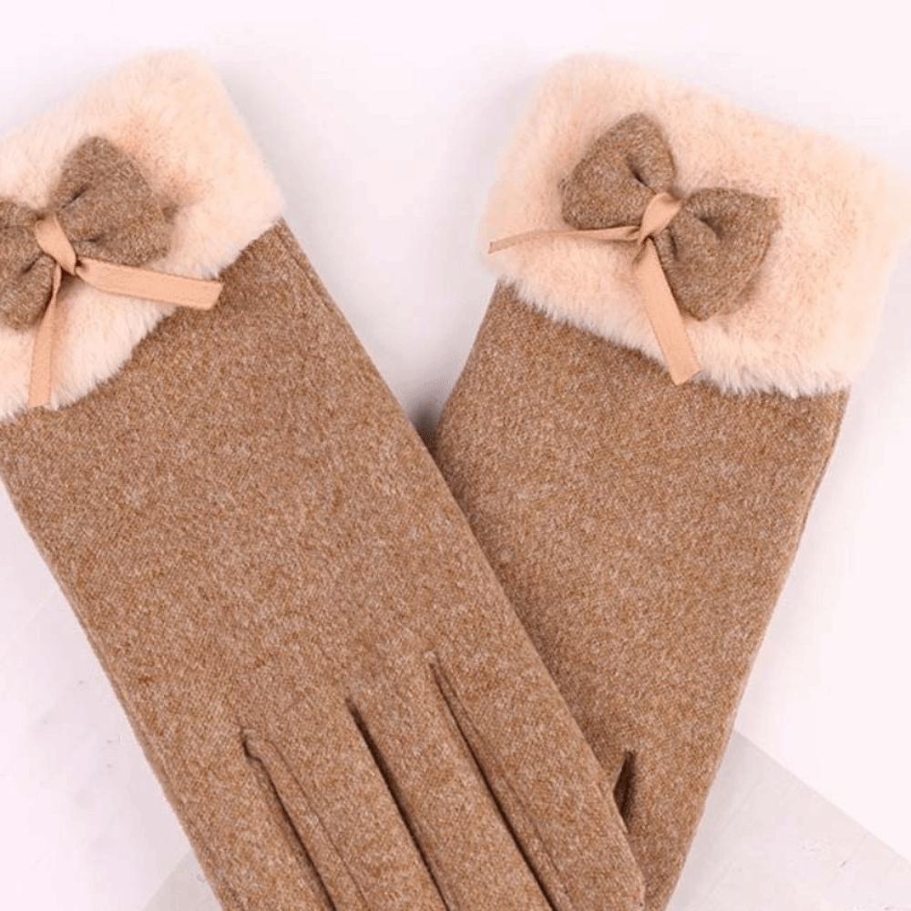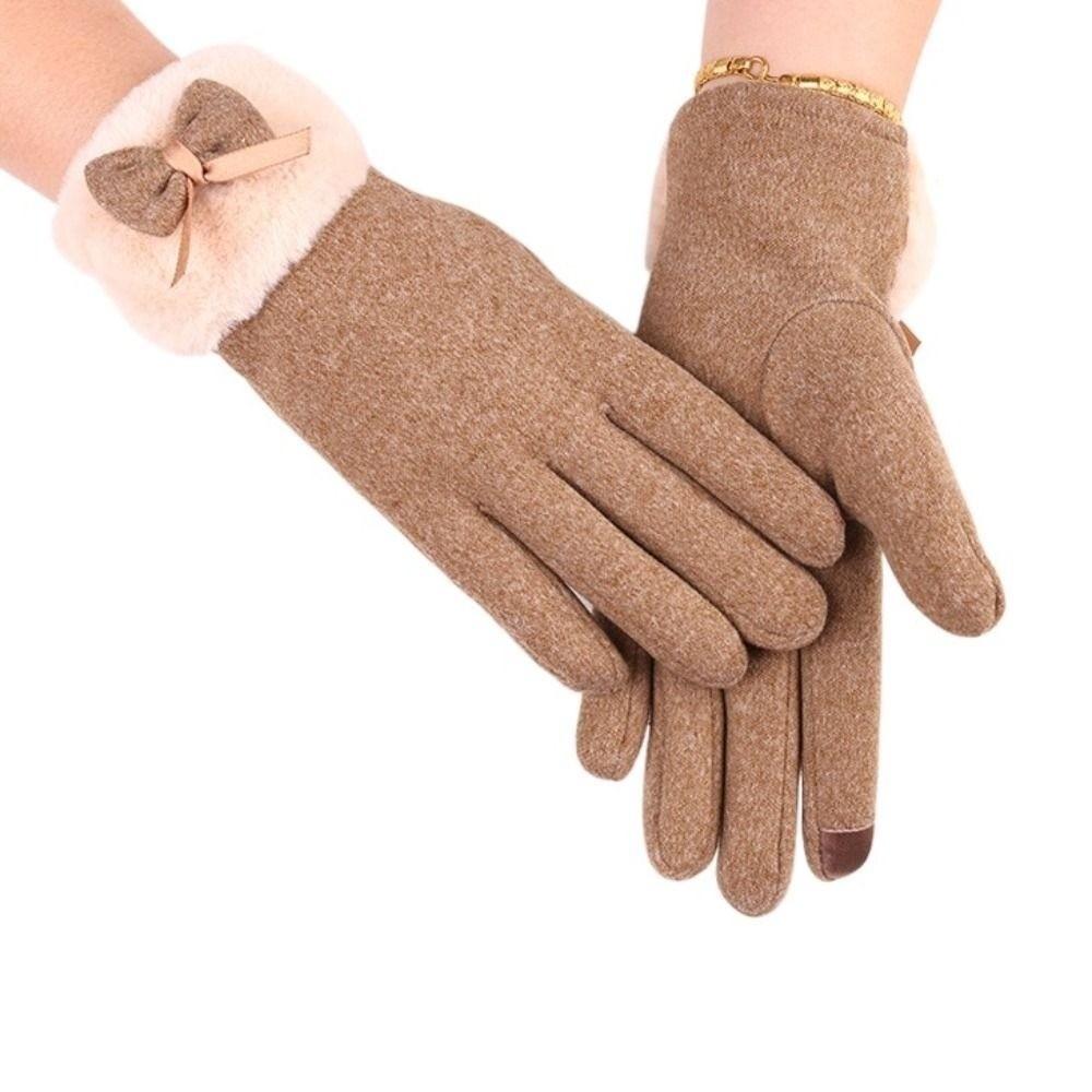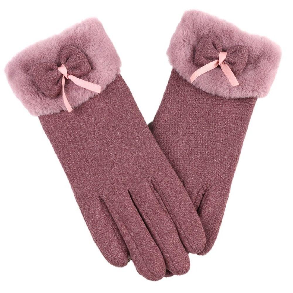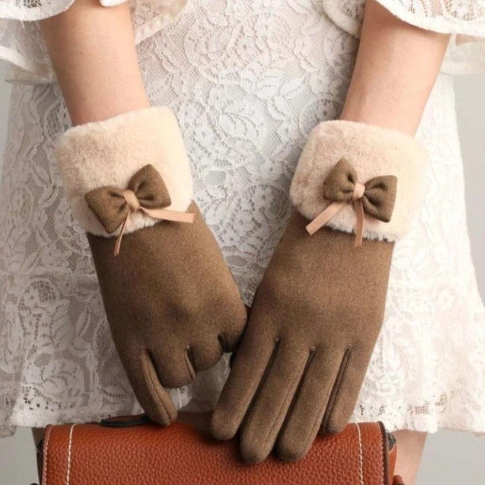 Bow Thickened Suede Gloves Soft Windproof Finger Mittens All-Match Women Anti-cold Gloves Outdoor
