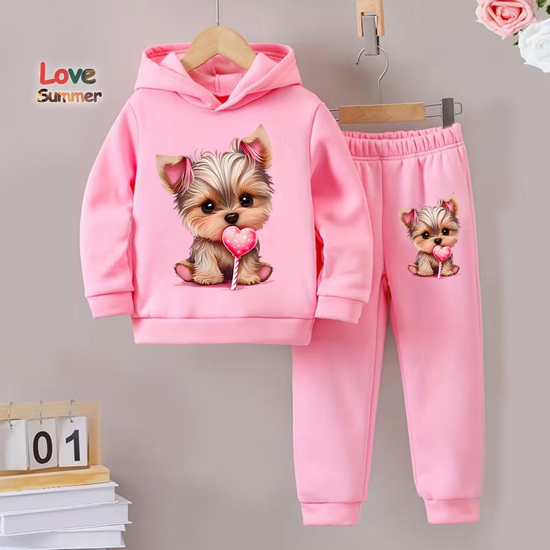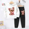 Комплект из двух толстовок и брюк для девочек на осень и зиму: милые принты с собаками, подкладка из теплого флиса, спортивные штаны (спортивный костюм). — купить товар онлайн с бесплатной доставкой по всему миру!